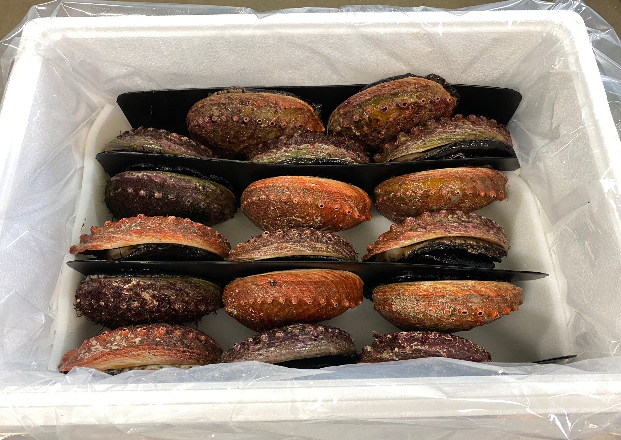 Premium live abalone, carefully conditioned and exported to maintain freshness and quality for international markets.